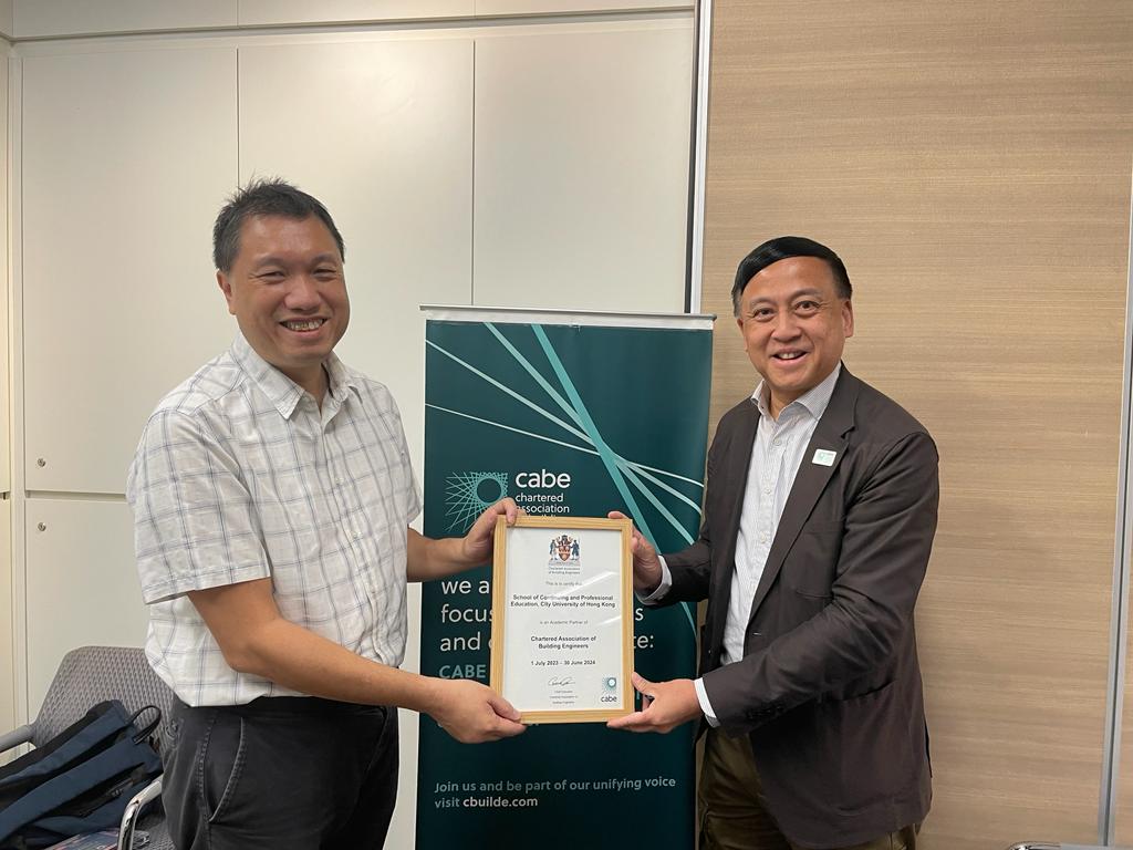 Mr. Sze said, "I am most pleased to see the cooperation with CityU SCOPE, which has been acclaimed for its long history in advancing knowledge for professionals."   "The new partnership also exemplified that CityU SCOPE's BSc (Hons) in Construction Management and BSc (Hons) in Quantity Surveying in collaboration the University of Wolverhampton have gained accreditation by CABE."   "Their students are able to start their professional journey with CABE and get a taste of the experience in joining a global recognised professional body while they are studying."   Dr Tong said, "The academic partnership will effectively enhance the synergy for both organisations, making a greater global impact together."   "CABE is a licensing body of the Engineering Council.  Our students and our graduates can broaden and deepen their international perspectives to be qualified as Chartered Engineers via CABE in future after they have registered for CABE membership."   CABE actively forms strategic partnerships with renowned universities and schools globally fostering the growth of the next generation in the industry.  Over 50 academic partners worldwide currently support the Assocation, with ongoing efforts to expand further.   CABE Hong Kong has invited staff and students from CityU SCOPE to attend a CPD seminar on "Recent Technological Advancement in CdTe-based Building-integrated Photovoltaics" on 27 July 2023.
